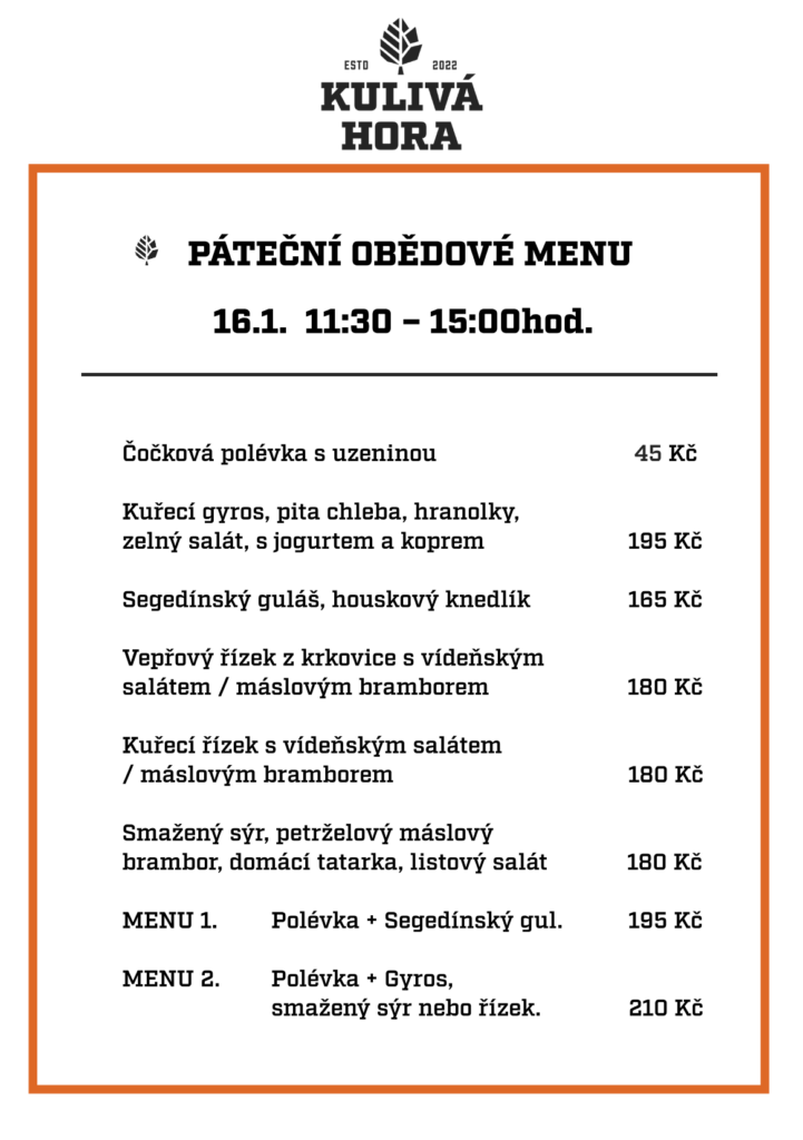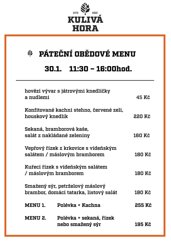 Zvýhodněné páteční obědové menu